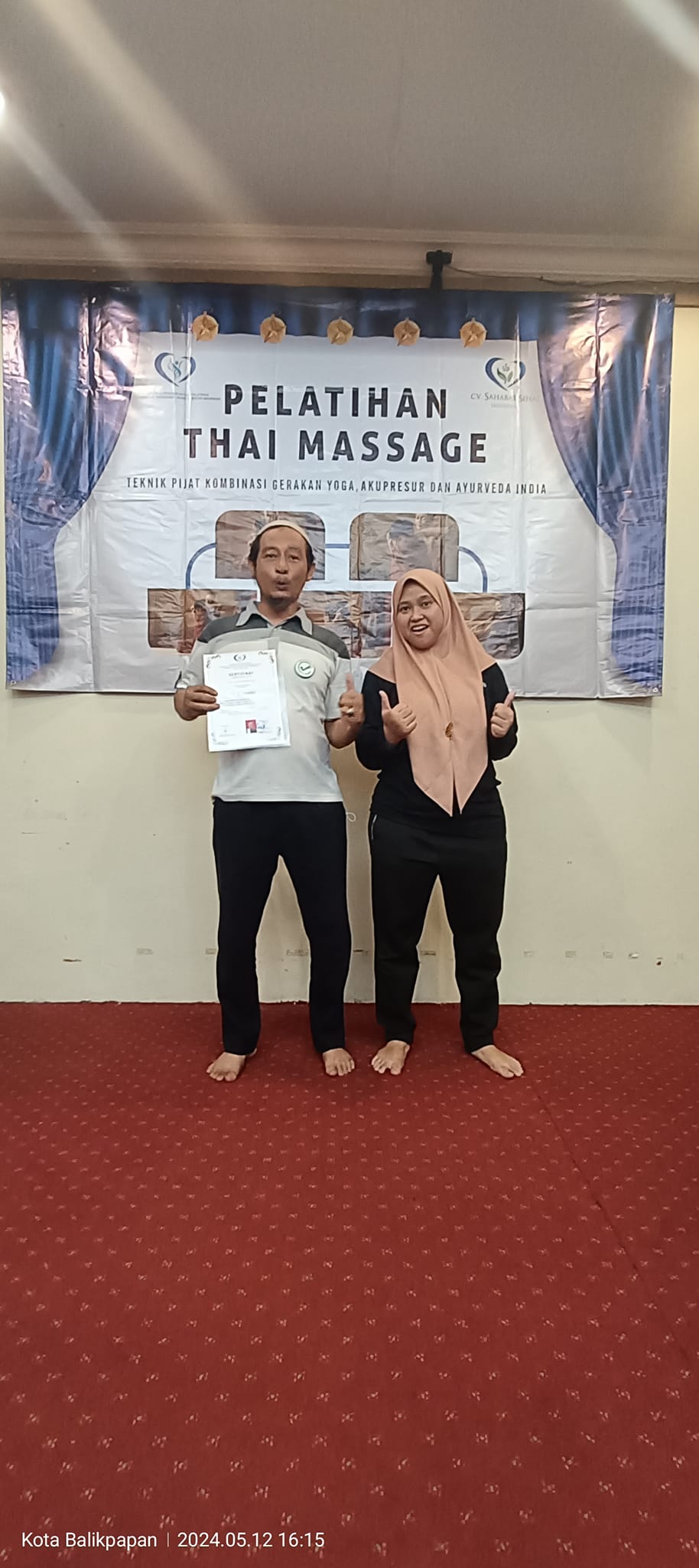 Alhamdulillah telah terlaksana dengan lancar Pelatihan Thai Massage Kota Balikpapan pada tanggal 12 Mei 2024 di Hotel Sepinggan.. semoga ilmu yg didapat bermanfaat untuk sesama.. aamiin